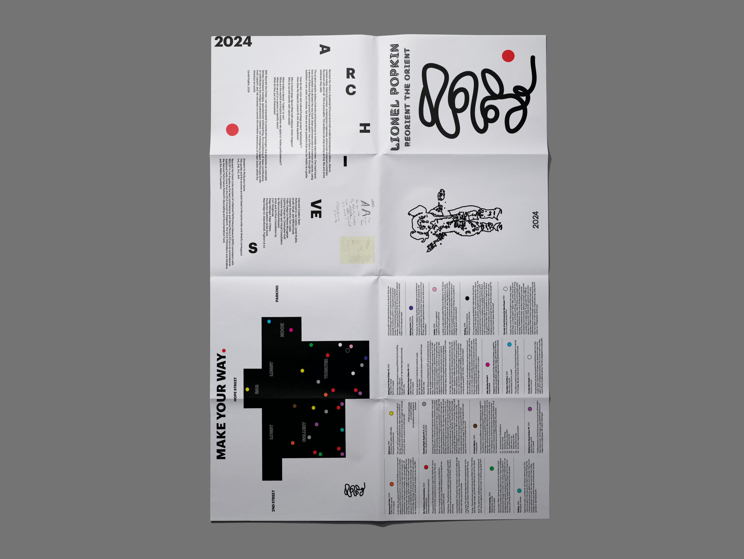 Emphasizing Popkin's interest in architecture and archives, we designed an exhibition program that doubles as a map and poster utilizing the original floor plans for the Walt Disney Concert Hall, layering REDCATs various spaces as line forms of memory. We ask the question how can an exhibition identity echo decades of singular creative engagement with this institution?